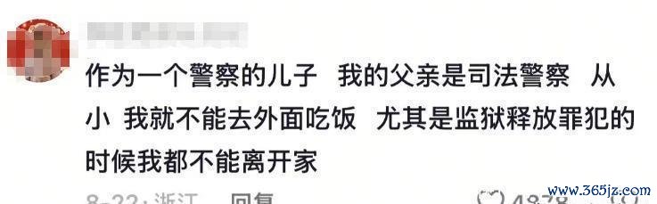 有网友说出了我方的碰到,称我方父亲是公法警员,从小我方就弗成去外面吃饭,尤其是监狱开释最烦的技能,我方王人弗成离开家。